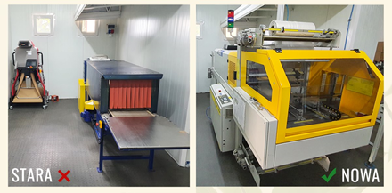 - Zamieniliśmy starą zgrzewarkę na nową. Dlaczego? Zgrzewarka, z której obecnie korzystamy ma bardzo dużą wydajność (do około 600 zgrzewek na godzinę), co oznacza, że teraz potrzebujemy mniej czasu, żeby zapakować taką samą ilość zgrzewek. Przekłada się to na mniejsze zużycie energii i mniejszą emisję cieplną.