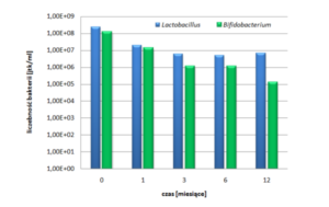 Produkty probiotyczne charakteryzują się zadowalającą stabilnością mikrobiologiczną w czasie ich przechowywania.
